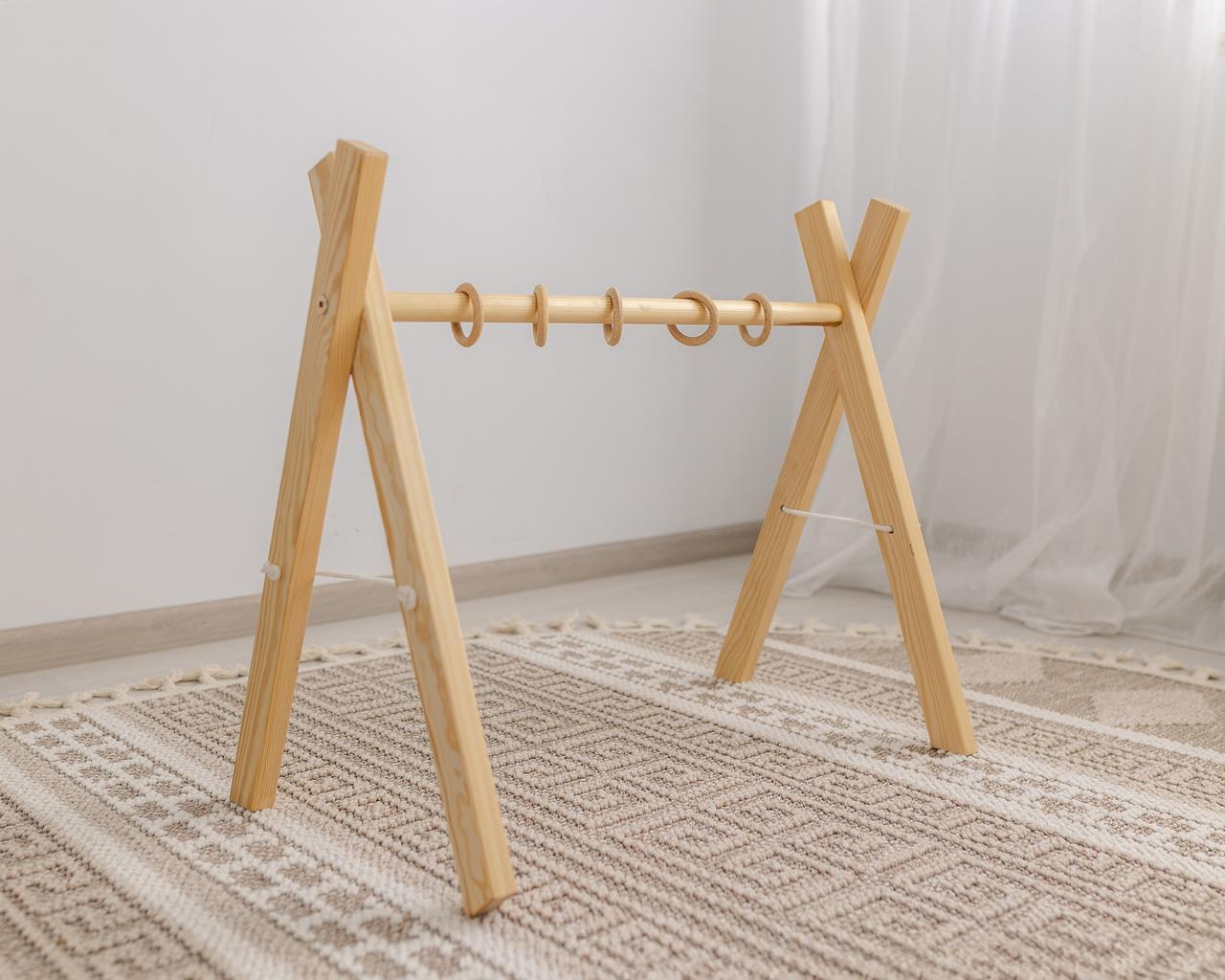 Комплектація: Дерев'яний каркас + дерев'яні колечка - 4 шт ( БЕЗ іграшок ).