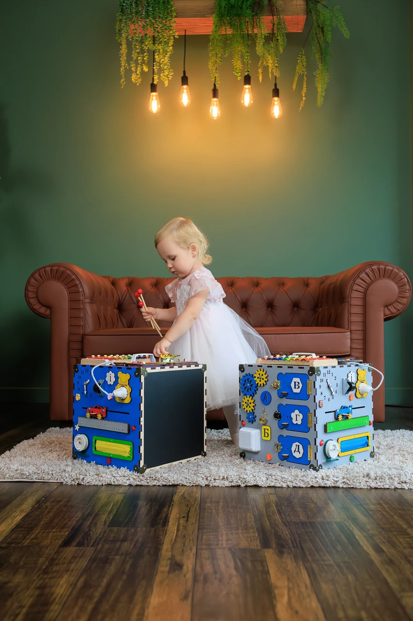 - Розвивається дрібна моторика та концентрація уваги. Нейронні зв'язки мозку формуються до 2 разів швидше. Ефективність бізібордів визнана передовими психологами!